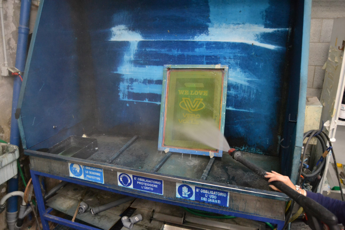 Questa azione di stampa può essere ripetuta in modo ciclico, a mano o tramite apposite macchine da stampa serigrafiche, raggiungendo una elevata velocità di produzione, in grado di soddisfare a seconda delle attrezzature disponibili per l'artigiano o l'industria. Il processo di impermeabilizzazione del tessuto dei quadri serigrafici è ad oggi ottenuto tramite apposite fotoemulsioni in base acquosa che vengono applicate in modo uniforme sul tessuto teso sul quadro e poi asciugate, formando una pellicola coesa ma idrosolubile. Questi quadri serigrafici spalmati se vengono esposti alla luce - e più precisamente a luce ultravioletta con lunghezza d'onda intorno a 365 nm - subiscono nelle aree esposte un indurimento, perdendo la proprietà di idrosolubilità. Se si espone alla luce ultravioletta un quadro per serigrafia con una pellicola fotografica (con aree nere, in corrispondenza della grafica, e con aree trasparenti alla luce nelle altre parti) sopra il tessuto spalmato, dove riceve luce, la fotoemulsione si indurisce, mentre dove la pellicola è nera la fotoemulsione, non ricevendo luce, rimane idrosolubile. In pratica, dopo il processo di fotoincisione tramite un semplice lavaggio con acqua si ha uno sviluppo del telaio serigrafico che rivelerà le aree di tessuto libere, in corrispondenza delle parti nere della pellicola fotografica. Ad oggi la serigrafia è una tecnologia consolidata di stampa industriale, molto utilizzata in tutte le applicazioni in cui sia richiesto un deposito di inchiostro più elevato rispetto ad altre tecnologie di stampa ad oggi disponibili, come la stampa offset, la stampa in flexografia, la stampa inkjet.
